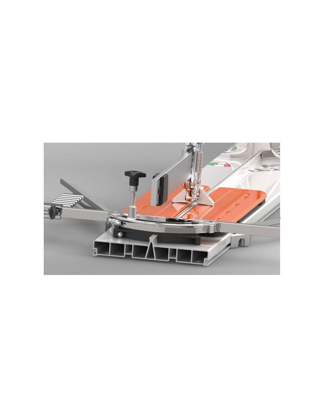 Carrello in alluminio provvisto di due cuscinetti a sfera regolabili per una perfetta scorrevolezza e massima precisione. Il carrello è dotato di Quick Start System: la presenza di molle rendono il manico sempre pronto al taglio.