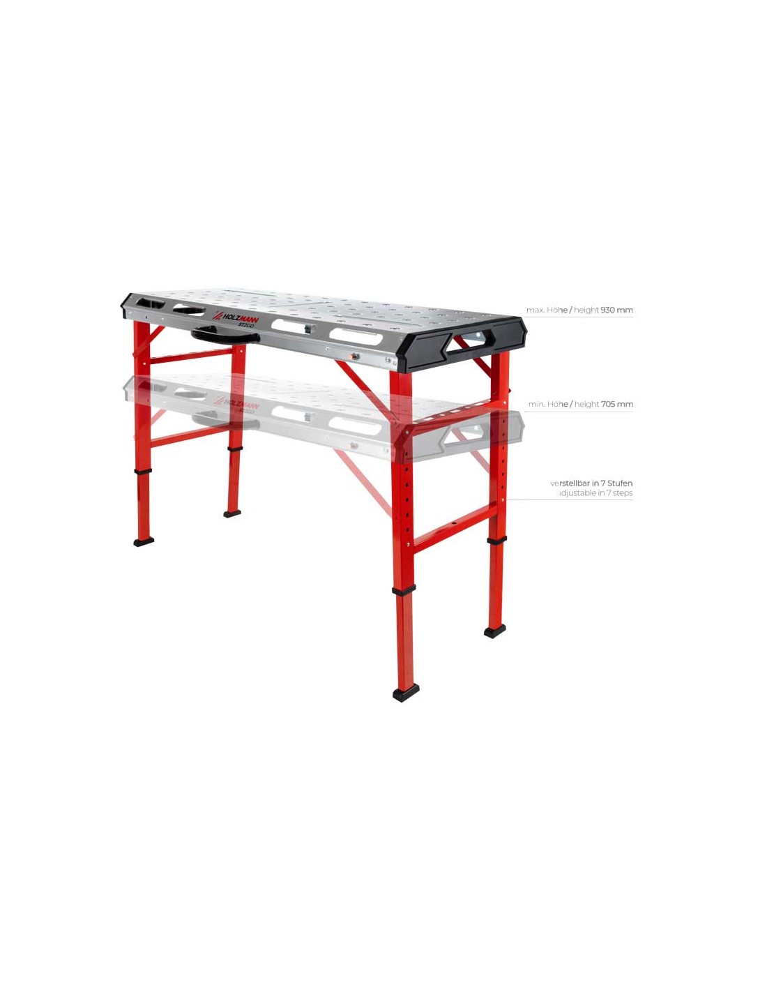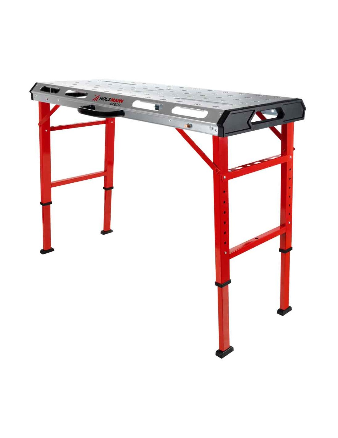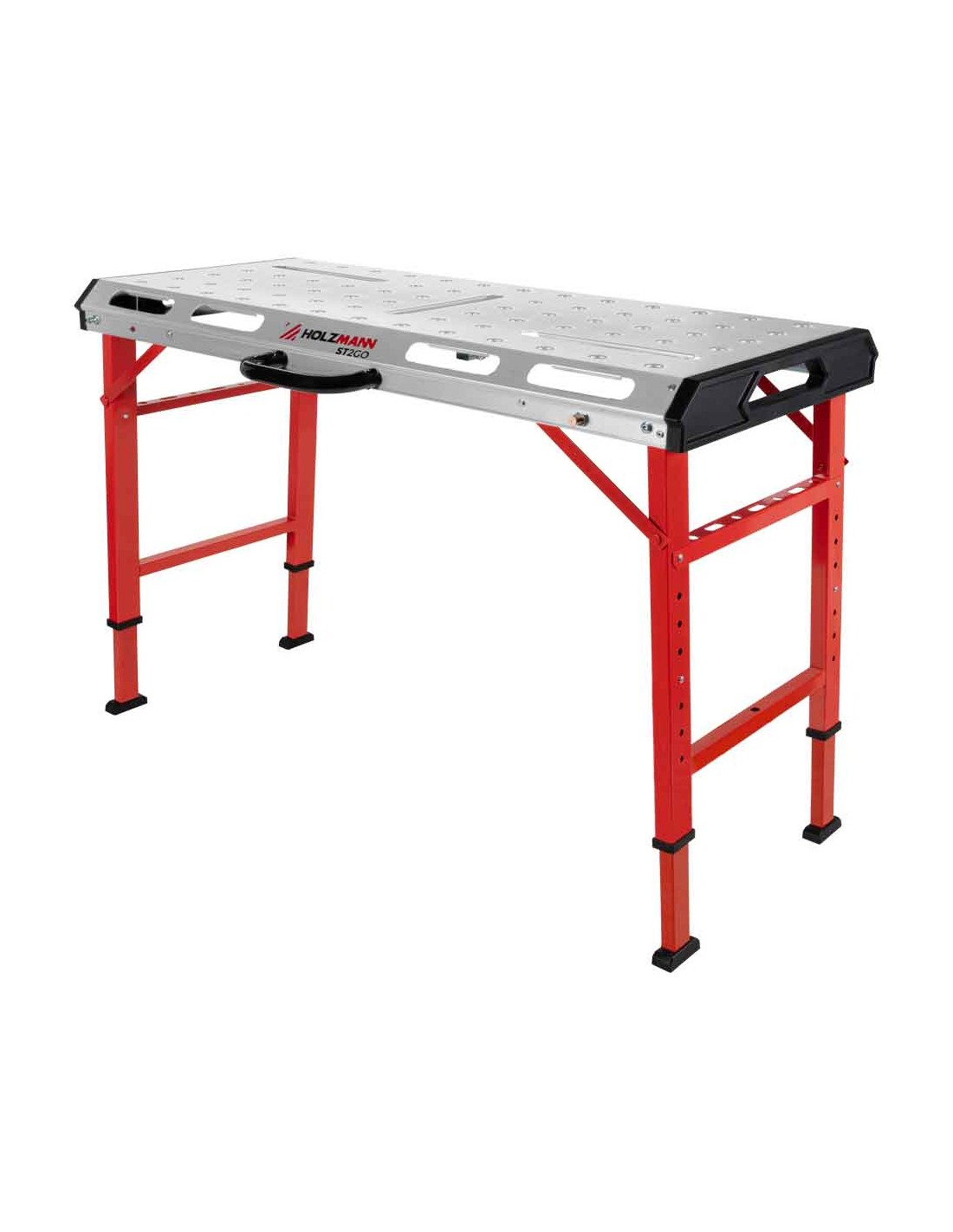 Il tavolo da saldatura mobile ST2GO di HOLZMANN è facilmente ripiegabile per un comodo trasporto in cantiere. L'altezza è regolabile, rendendolo ideale per la vostra statura.