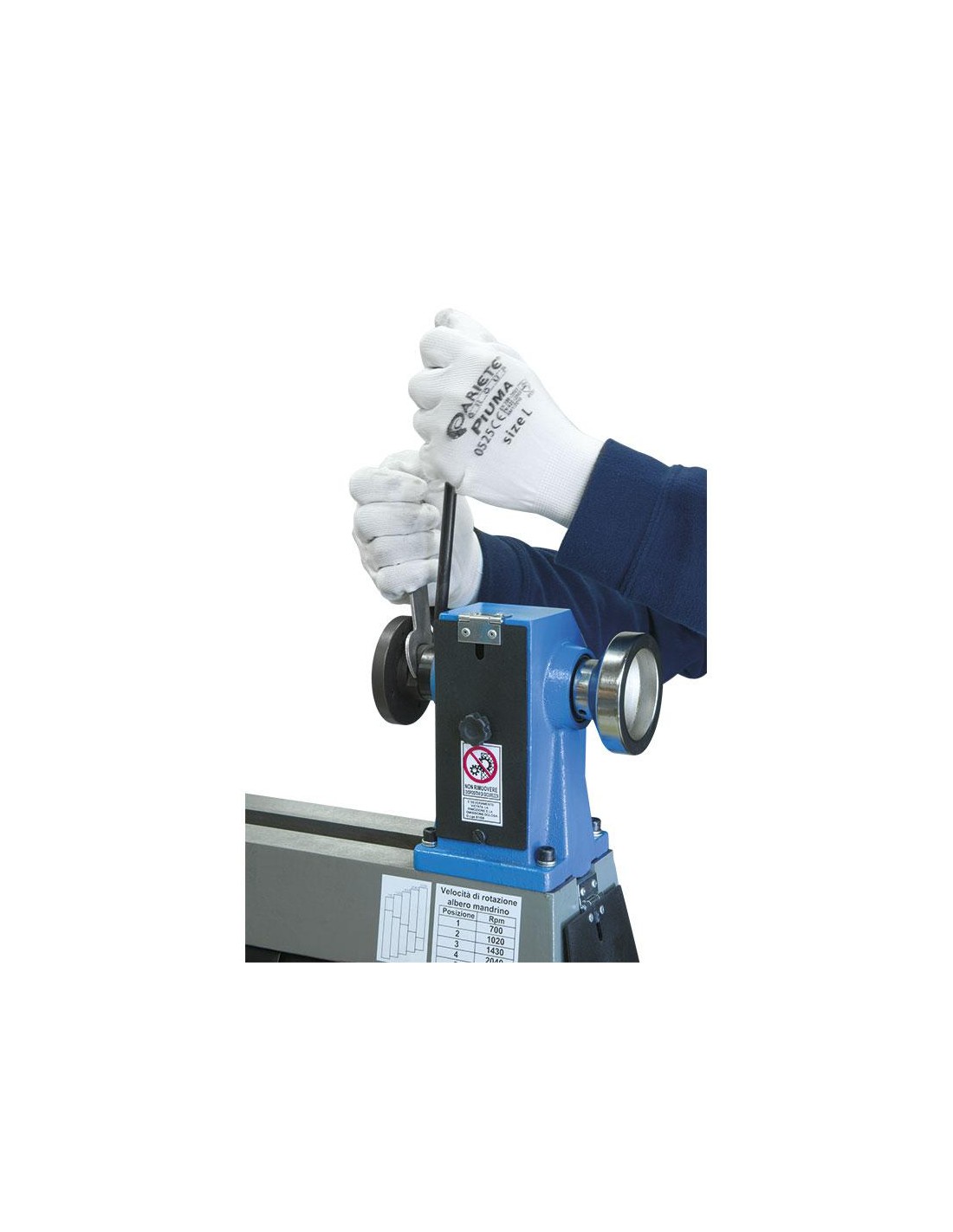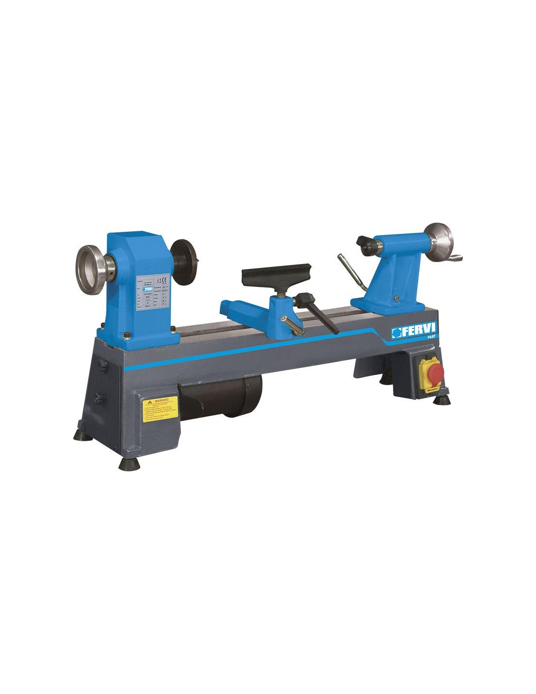 Con cambio velocità cinghia, contropunta in ghisa con sistema di bloccaggio, carrello scorrevole poggia utensile Il Tornio da Legno Fervi è una macchina utensile, ad asse orizzontale, per la lavorazione del legno mediante asportazione di truciolo. Questa macchina è in grado di eseguire operazioni di tornitura, sfacciatura e profilatura su tutti i tipi di legno. Il moto di taglio è dato dal moto del pezzo in lavorazione, rotante sul proprio asse. La macchina è completamente a funzionamento manuale, in quanto può eseguire solo movimenti su comando diretto dell’operatore. Questo tornio è progettato in due gruppi fondamentali: Il gruppo dell’albero mandrino che è costituito dal mandrino, al quale viene reso solidale il pezzo in lavorazione ed il gruppo scorrevole poggia-utensile che è costituito dagli organi della trasmissione del moto, i quali vanno dal motore al mandrino.