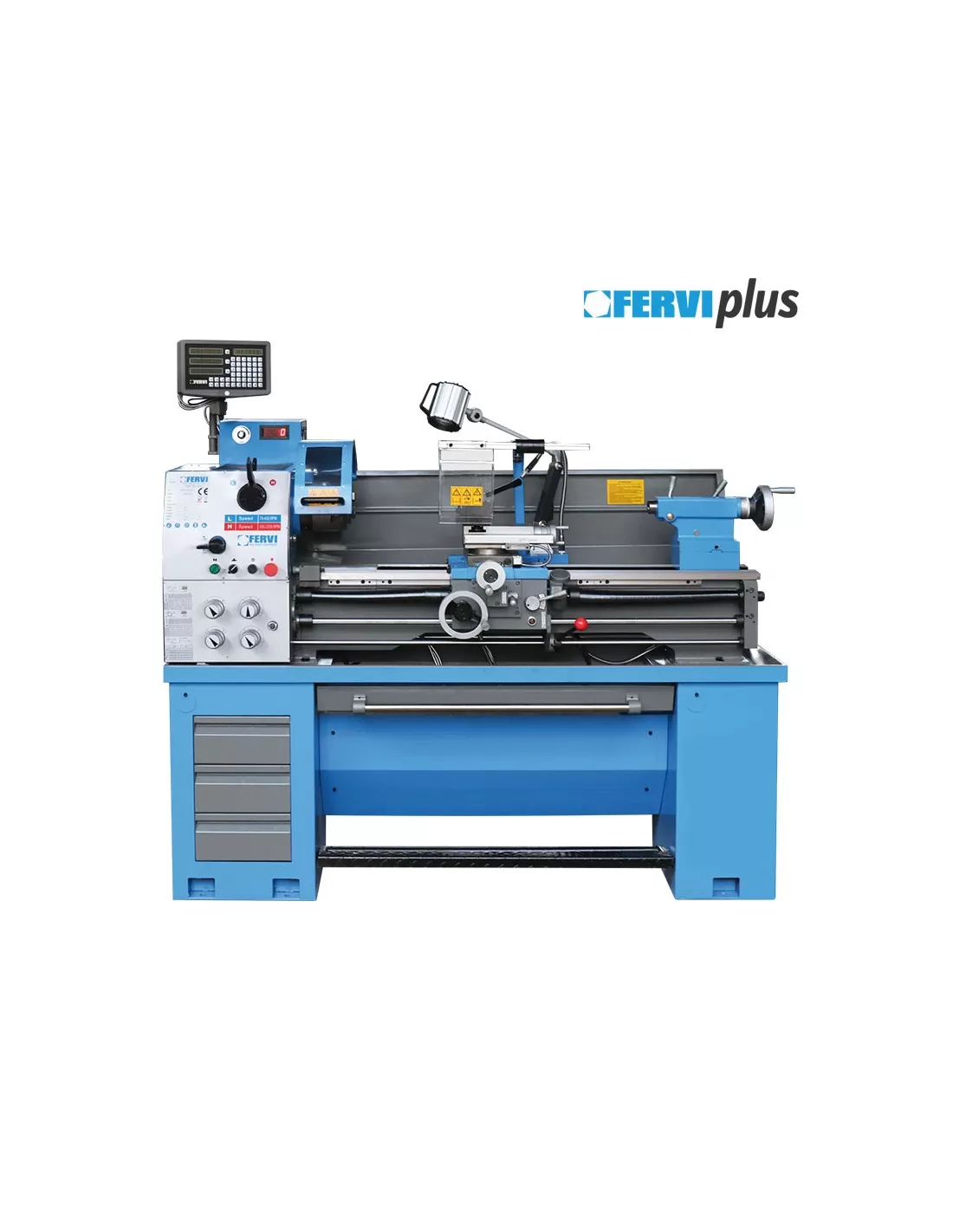 Scatola ingranaggi semi norton e visualizzatore a 3 assi. Barra di tornitura con frizione registrabile e visualizzatore della velocità di rotazione.