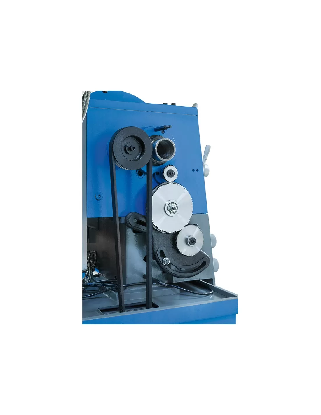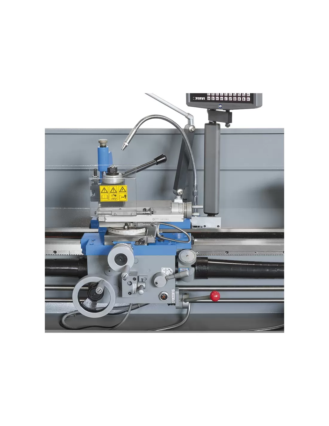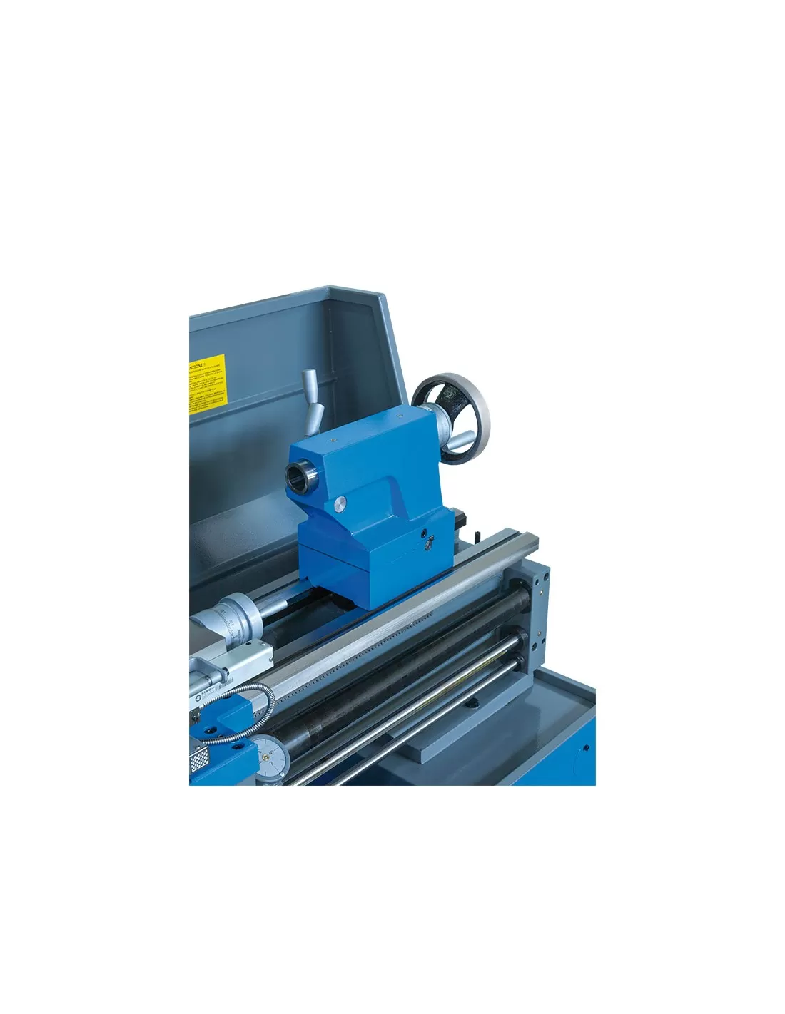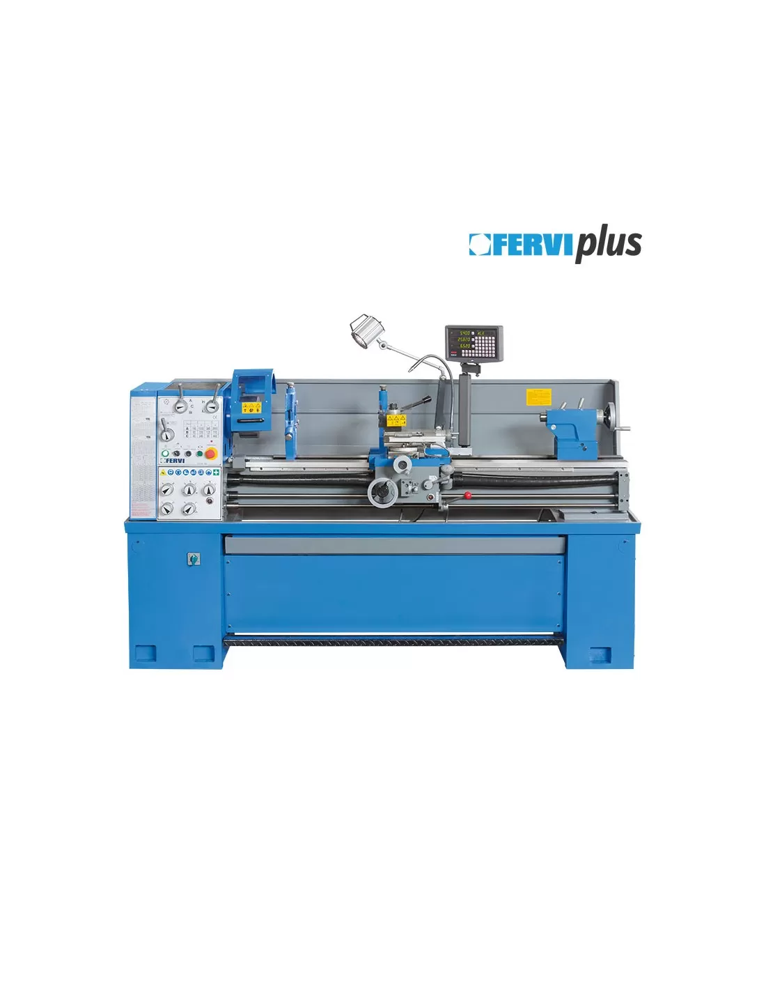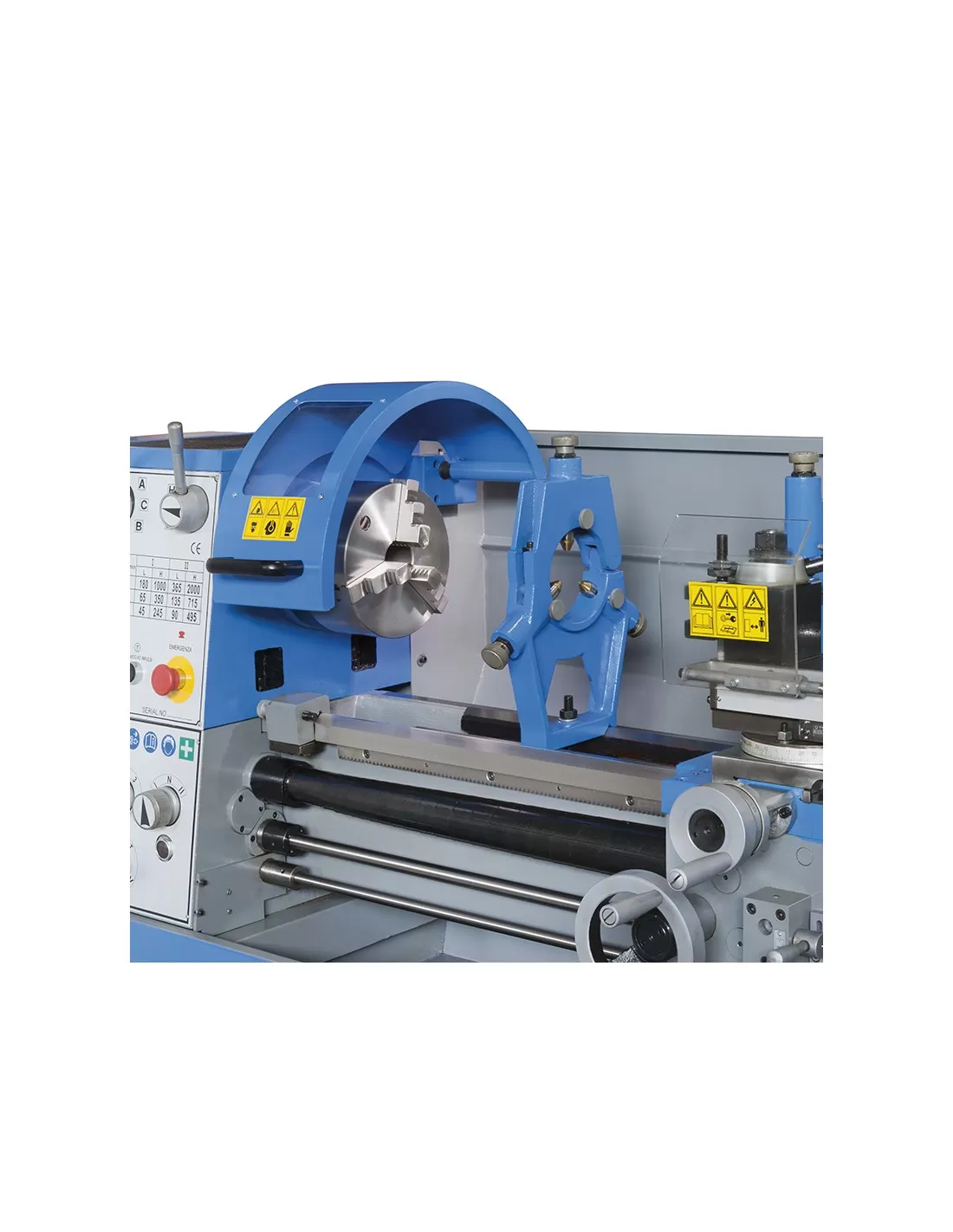 Con elettrofreno e motore a 2 velocita', visualizzatore a 3 assi e scatola ingranaggi semi norton. Barra di tornitura con frizione registrabile.
