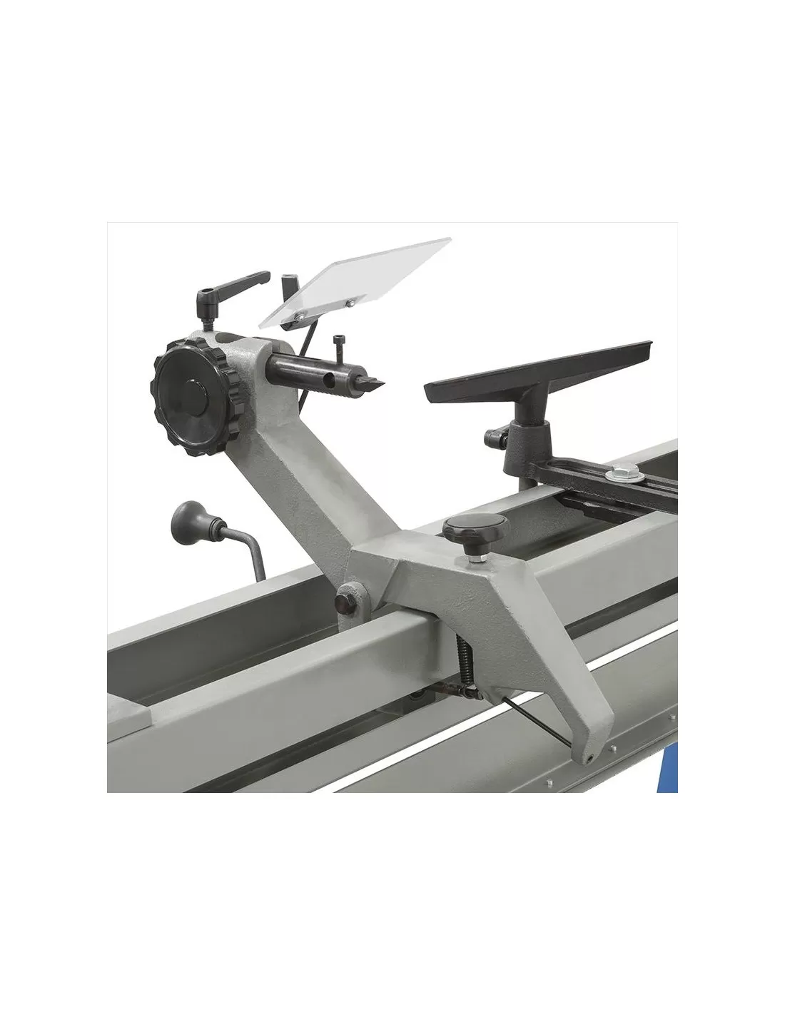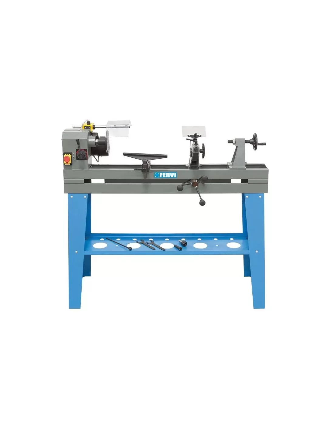 Con leva per regolare la velocità e zona di lavorazione protetta con riparo mobile interbloccato in plexiglass. Il Tornio da Legno Fervi è una macchina utensile, ad asse orizzontale, per la lavorazione del legno mediante asportazione di truciolo. Questa macchina è in grado di eseguire operazioni di tornitura, sfacciatura e profilatura su tutti i tipi di legno. Il moto di taglio è dato dal moto del pezzo in lavorazione, rotante sul proprio asse. La macchina è completamente a funzionamento manuale, in quanto può eseguire solo movimenti su comando diretto dell’operatore. Questo tornio è progettato in due gruppi fondamentali: Il gruppo dell’albero mandrino che è costituito dal mandrino, al quale viene reso solidale il pezzo in lavorazione ed il gruppo scorrevole poggia-utensile che è costituito dagli organi della trasmissione del moto, i quali vanno dal motore al mandrino. La velocità della macchina è regolata tramite una leva e viene effettuata quando la macchina è in funzionamento.