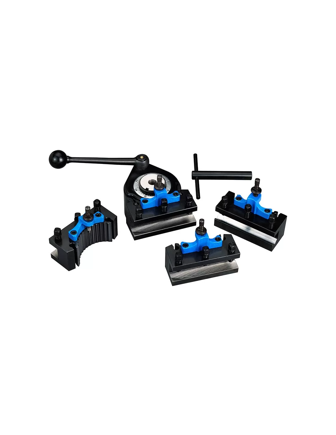 Con dentatura di attacco temprata e rettificata. Agendo su di un perno eccentrico, il portautensile viene bloccato sulla dentatura del corpo. Permette una riproducibilità di 40 posizioni angolari possibili del portautensile. Questa precisione viene mantenuta anche dopo innumerevoli cambi dell'utensile. Composto da: 1 torretta portautensili, 3 portautensili a sede piana, 1 portautensile a sede prismatica.
