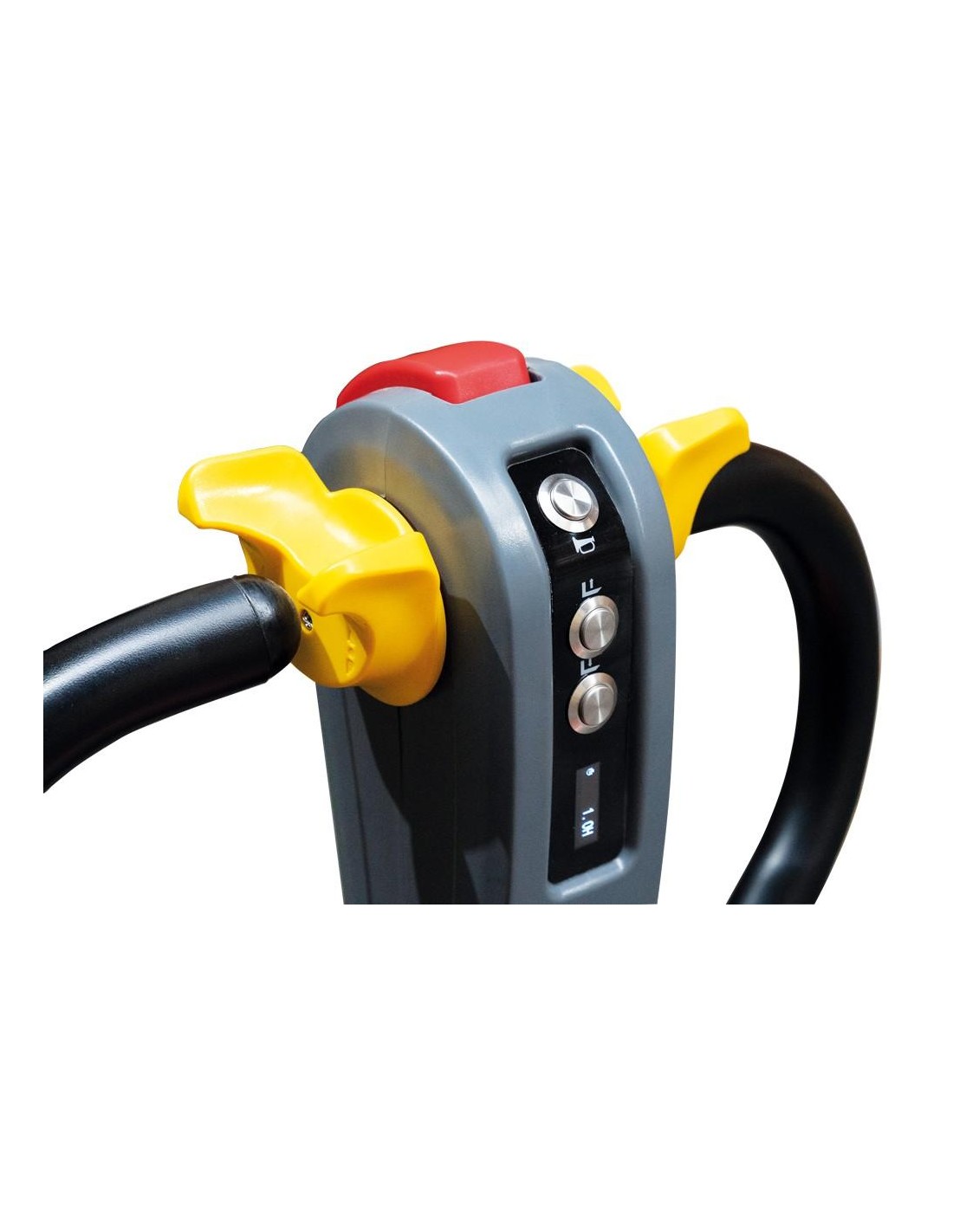 Il transpallet si guida con il timone e i comandi posizionati in modo ergonomico
