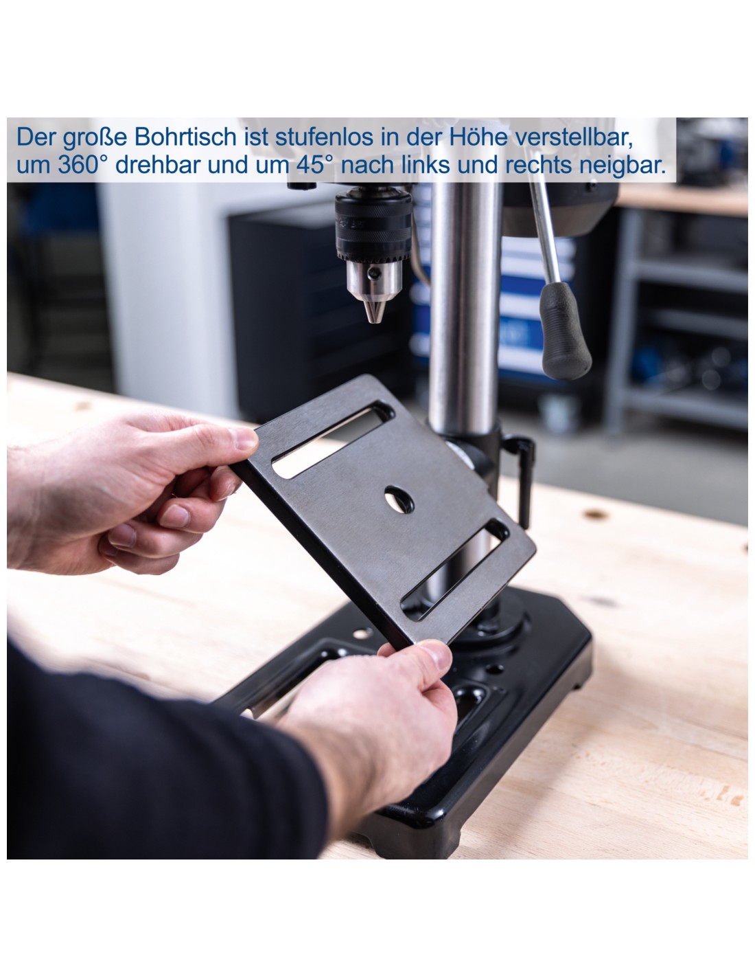 • Potente trapano da banco per forature precise su legno, metallo, alluminio o plastica