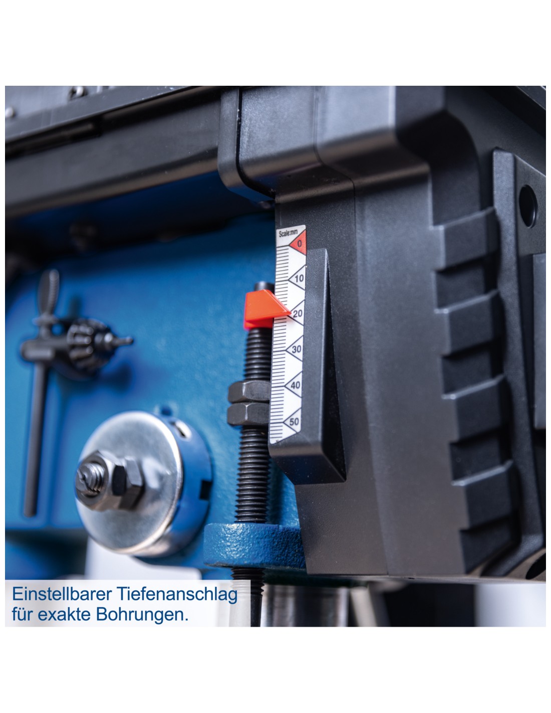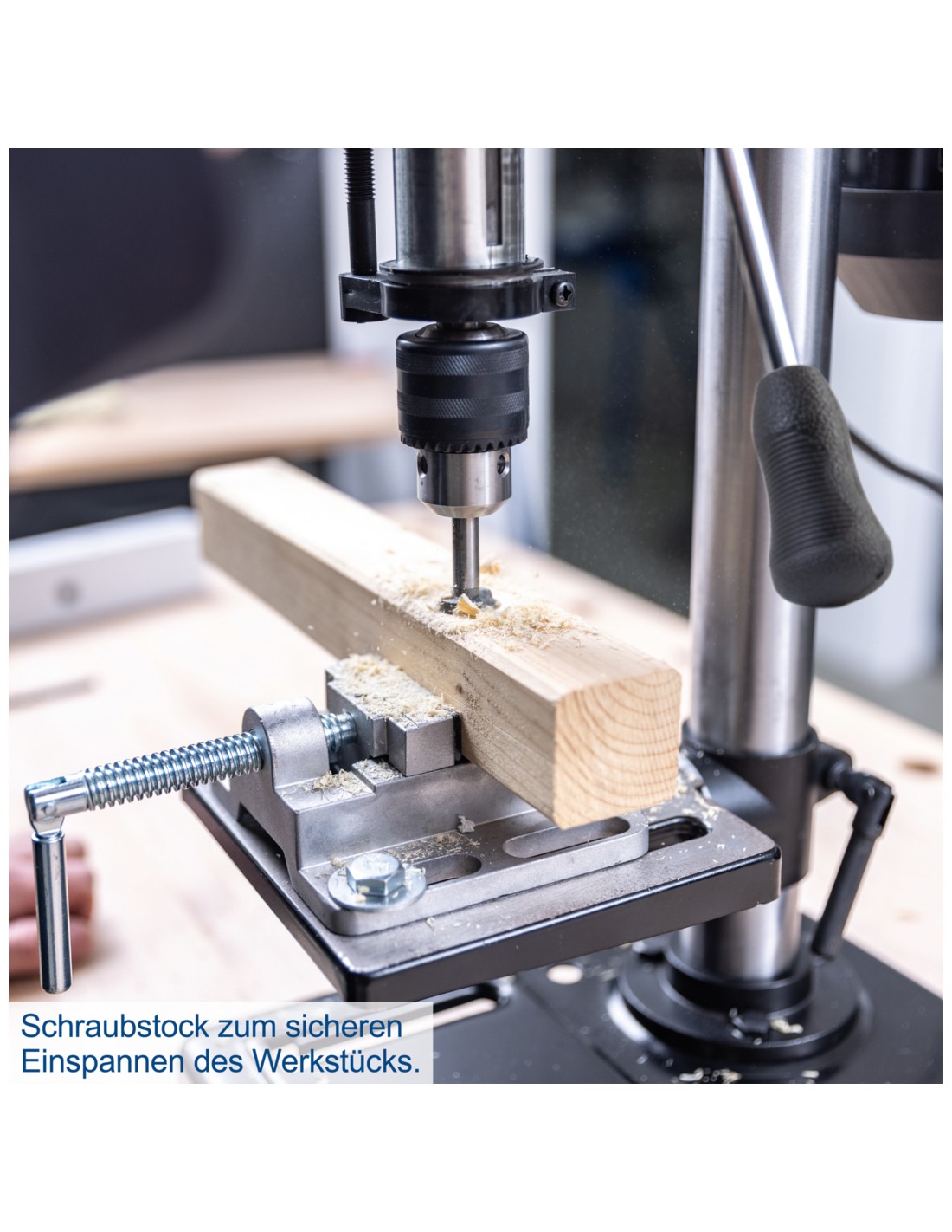 Il trapano a colonna da banco Scheppach TBM200 è ideale per forature precise in un'ampia varietà di materiali, come legno, acciaio, metallo, alluminio o plastica. Il potente motore da 400 watt e la regolazione della velocità a 5 livelli, da 550 a 2600 giri al minuto, garantiscono una foratura su misura per il materiale. La profondità di foratura può essere regolata in continuo fino a un massimo di 50 mm. L'ampio tavolo di foratura è regolabile in altezza in continuo, ruota di 360° e si inclina di 45° a sinistra e a destra. L'ampio sbraccio di 102 mm consente di lavorare in modo affidabile anche pezzi di grandi dimensioni. La morsa consente inoltre un serraggio sicuro del pezzo.