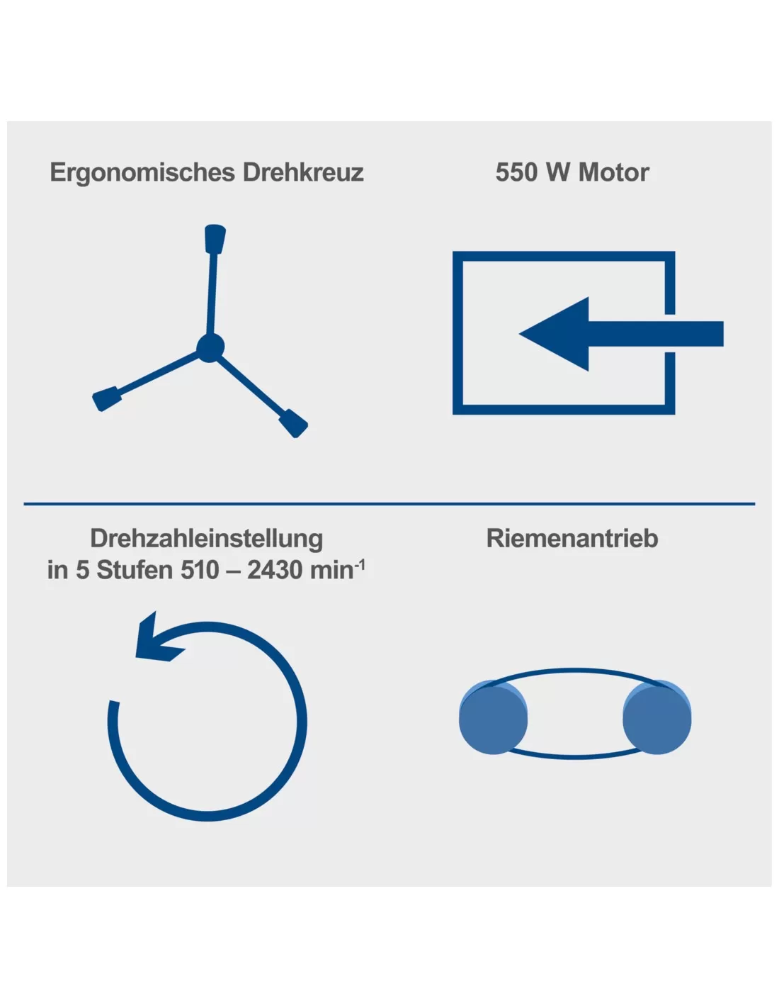 • Regolazione della velocità a 5 livelli da 510 a 2430 giri/min