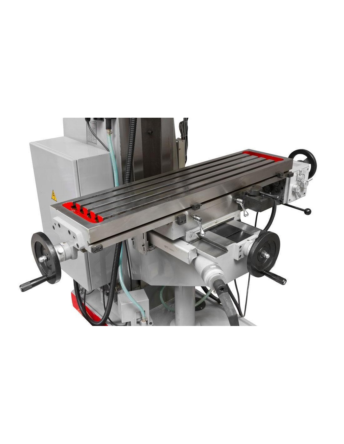 Incluso: Visualizzatore con display digitale sui 3 assi, impianto ri refrigerazione, lampada alogena, albero di fresatura 22mm, albero di fresatura 27mm, adattatori (4,5,6,8,10,14,12,16mm), mandrino 1-16mm (B18), 1xCM2 - 1xCM3 - 1xB18, Morsa professionale 160mm con ganascia