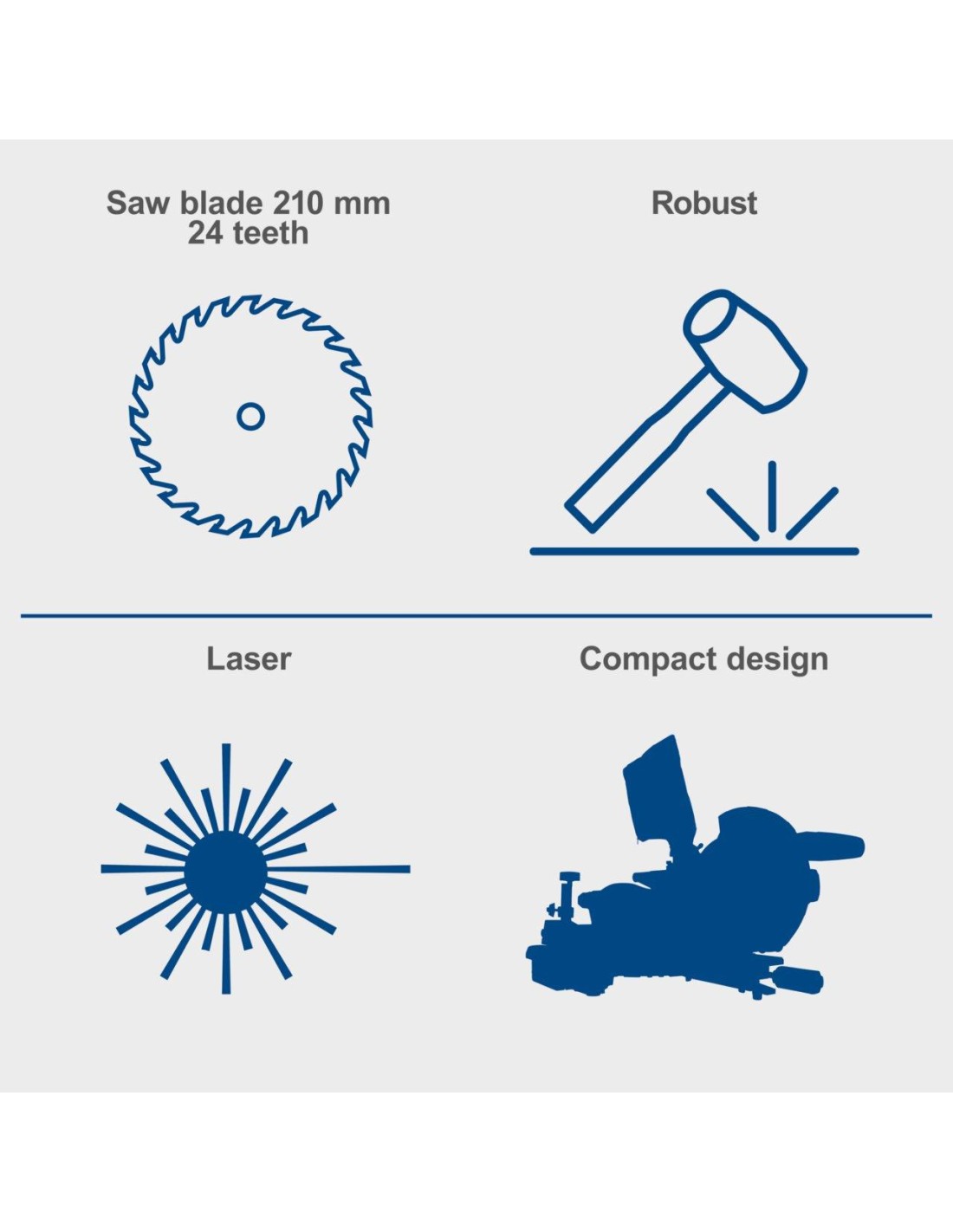 Grazie al laser integrato, è possibile eseguire tagli con una precisione estrema, mentre il piano girevole permette di regolare l'angolo di taglio fino a 45° sia a sinistra che a destra. Per tagli inclinati, la testa della sega può essere inclinata fino a 45° verso sinistra. Le ampie basi di supporto su entrambi i lati consentono di lavorare comodamente anche su pezzi di legno lunghi, mentre il fermo di sicurezza blocca il pezzo in lavorazione durante il taglio, garantendo risultati stabili e sicuri.