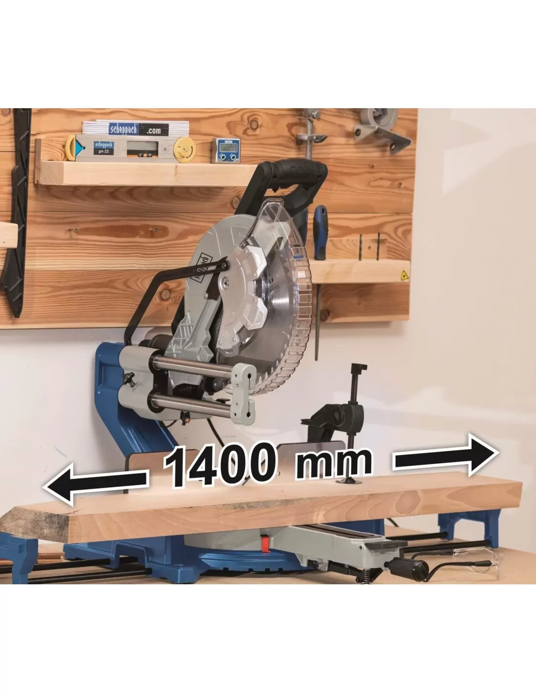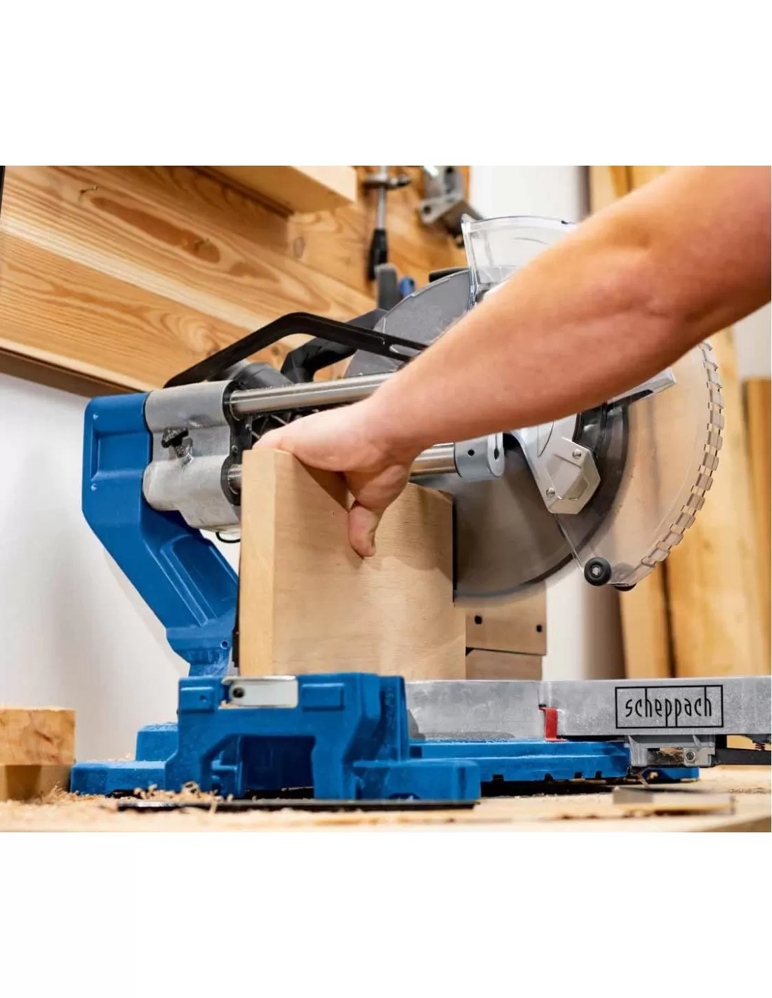 La troncatrice scheppach HM305SL con funzione di estrazione scorrevole è l'ideale quando c'è poco spazio in officina, ma è comunque necessaria una troncatrice versatile e di alta qualità.