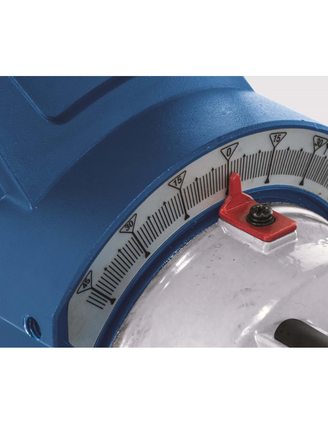 Il piano di lavoro ha un'inclinazione tra -50 a +50° per vari tagli obliqui. Gli angoli comuni possono essere fissati rapidamente e facilmente utilizzando diversi punti di bloccaggio.