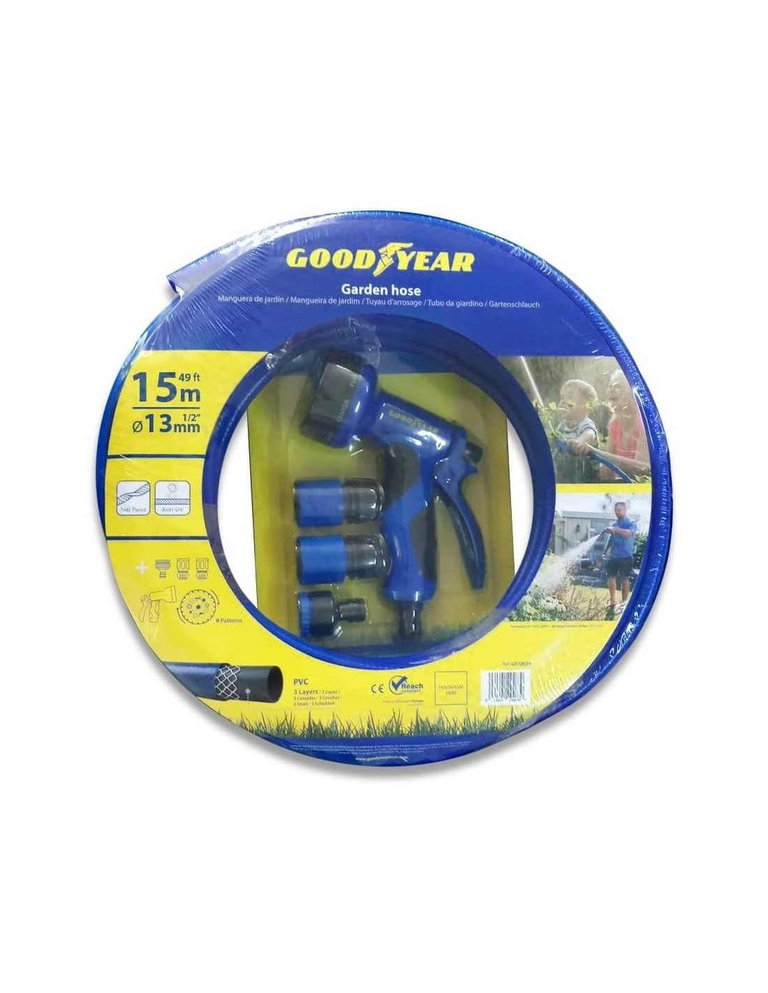 Il tubo da giardino avvolgibile Goodyear ha un tubo di diametro 16mm protetto da un sistema di tipo antitorsione che si prende cura della struttura del tubo ed evita la formazione di nodi, sia quando si dilata che quando si ritrae. Durante lo svuotamento si ritrae automaticamente, per facilitare la raccolta. Resiste a una pressione di esercizio continua di 8 bar.