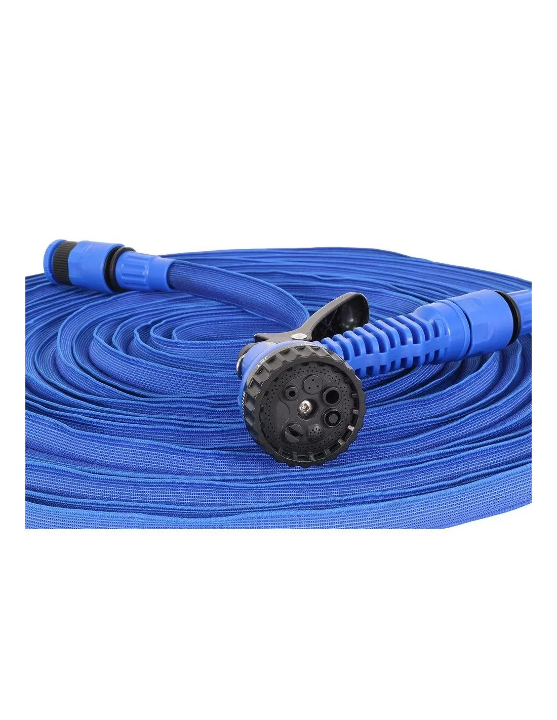 Tubo estensibile che raggiunge 30 metri quando completamente esteso. Può essere utilizzato per innaffiare le piante, fare la doccia ai vostri animali domestici, o per la pulizia di superfici come finestre, pavimenti o carrozzeria.