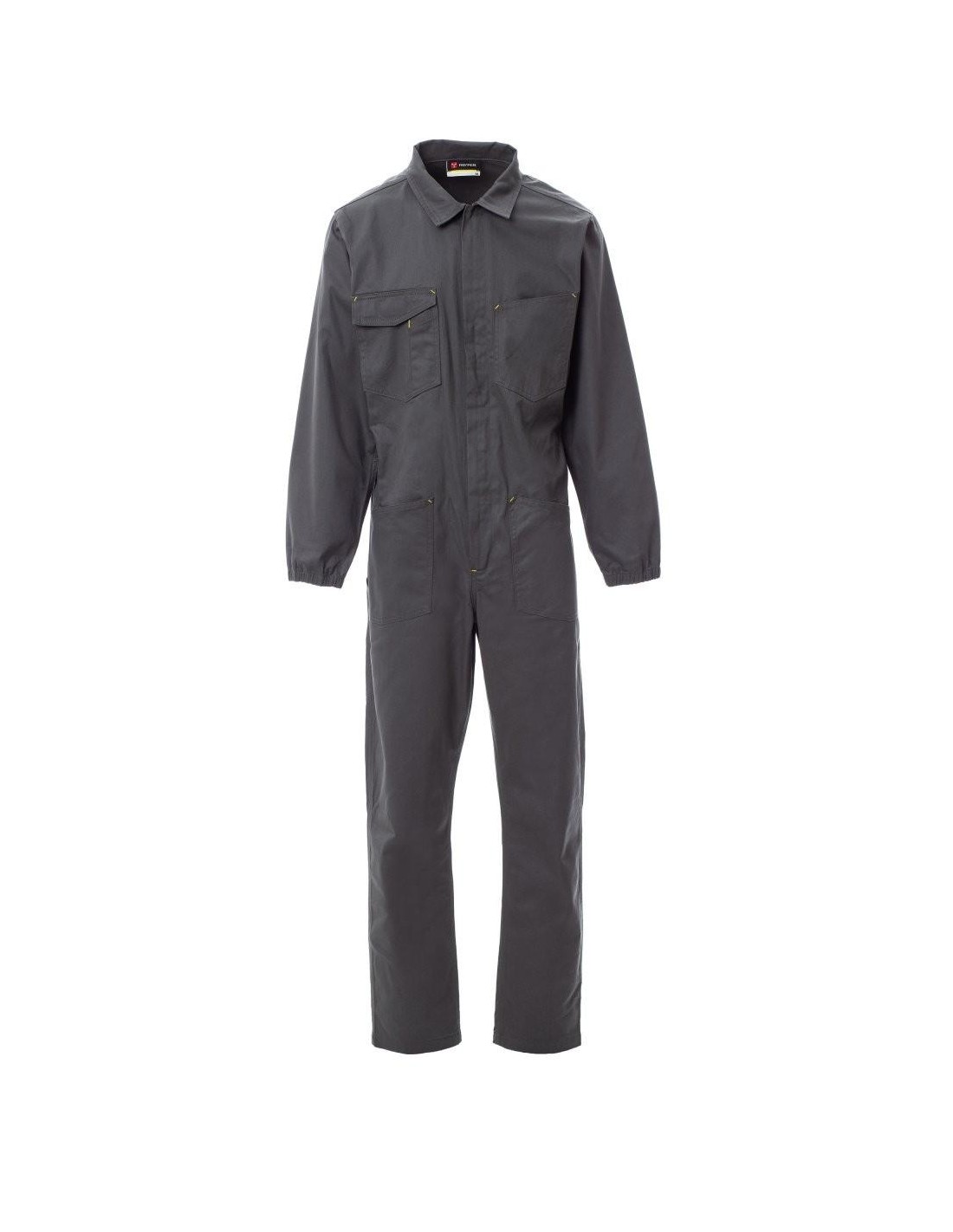 Tuta con cerniera centrale a doppio cursore coperta, elastico ai polsi e in vita interno schiena. Due tasche applicate, due tasche al petto di cui una porta smartphone, porta badge, porta penna e patta di chiusura con velcro, tasca porta metro. Cuciture cavallo e interno gamba a doppio ago.