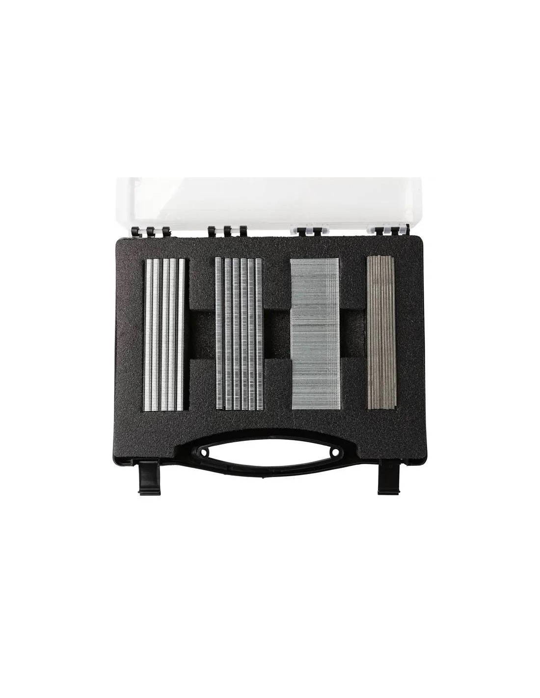 Valigetta con assortimento di graffette e chiodi adatti alla graffatrice sparachiodi ad aria compressa Scheppach 7906100715