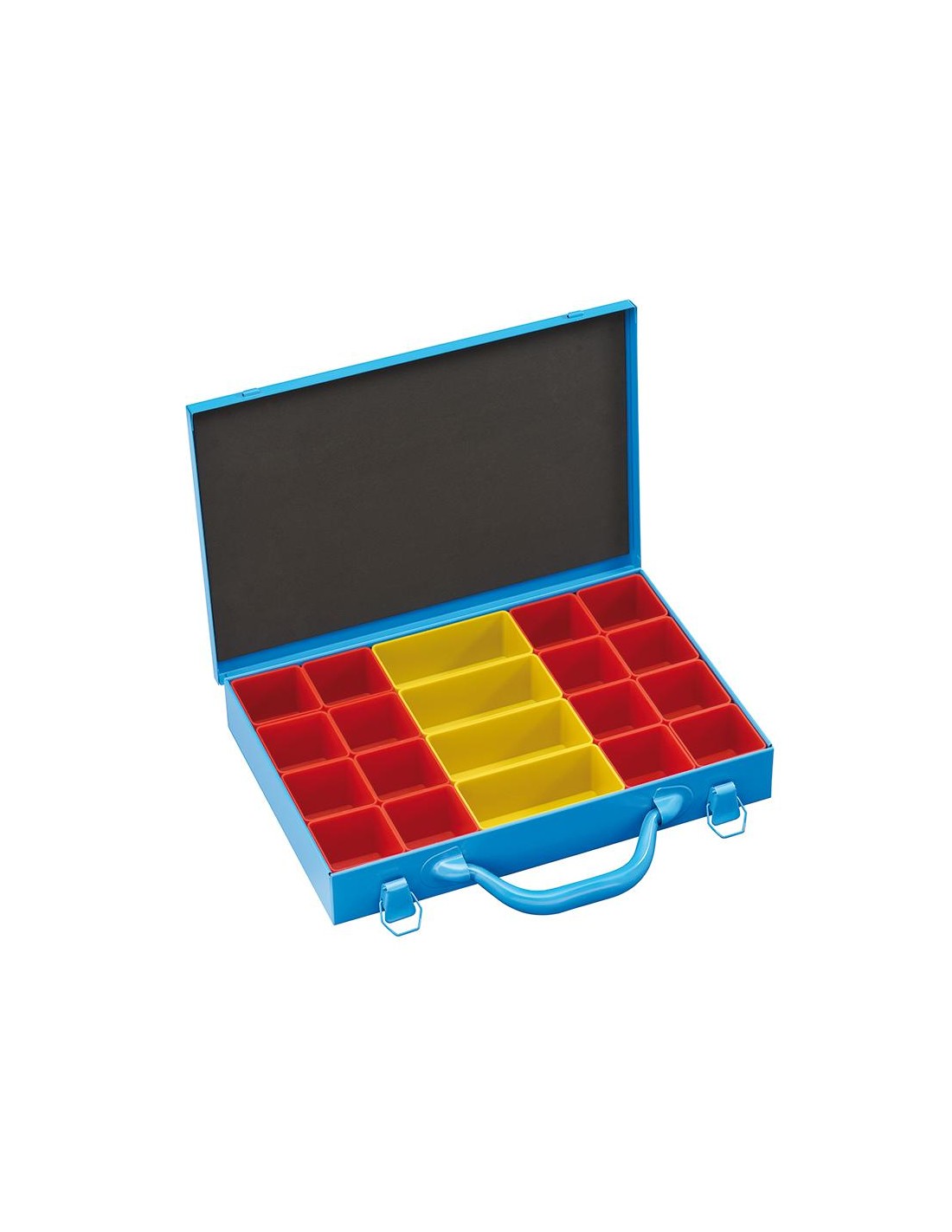 La valigetta, ideale per riporre minuteria, ha una chiusura di sicurezza centrale per evitare il rovesciamento involontario della minuteria.