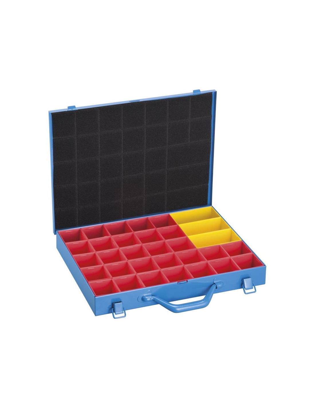 Valigetta portaminuteria in metallo, con 29 contenitori plastici piccoli e 3 medi,