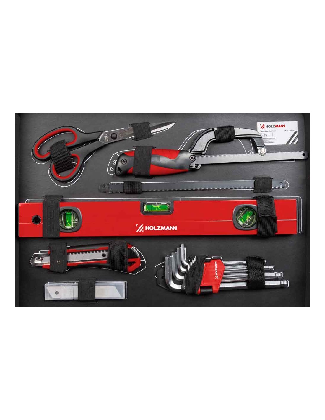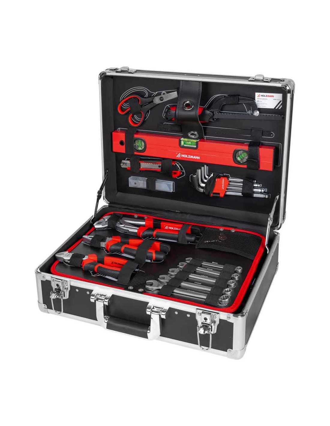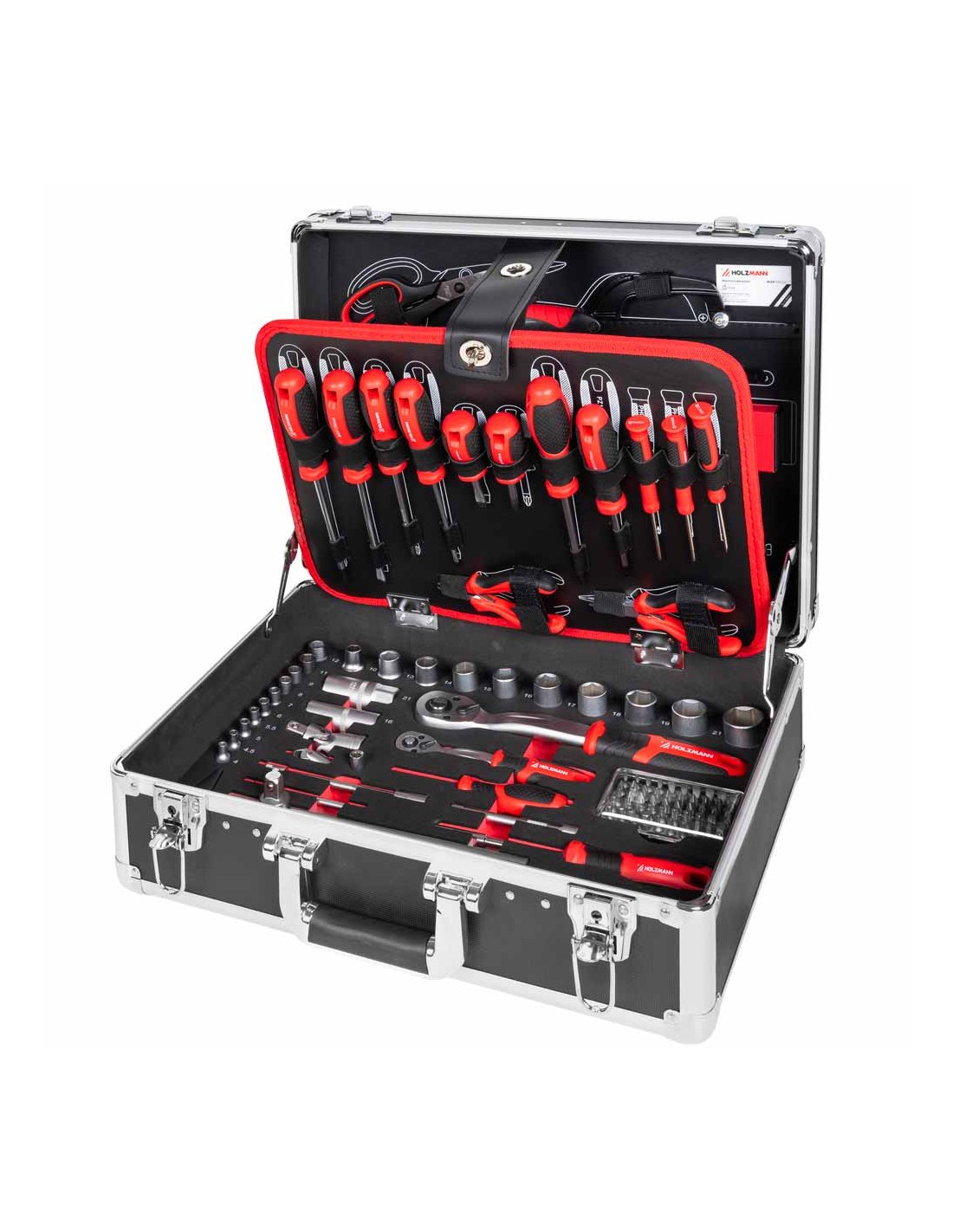 La cassetta portautensili HOLZMANN WZK119ECO con un set di utensili da 119 pezzi è suddivisa e ordinatamente riposta in 4 scomparti in un pratico formato a valigetta con maniglia.