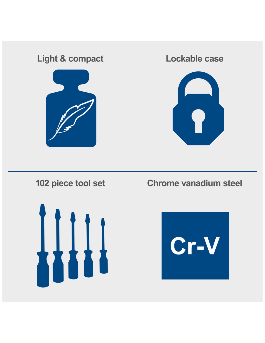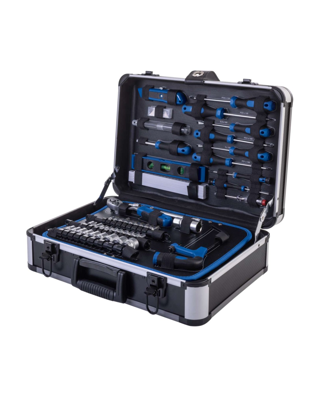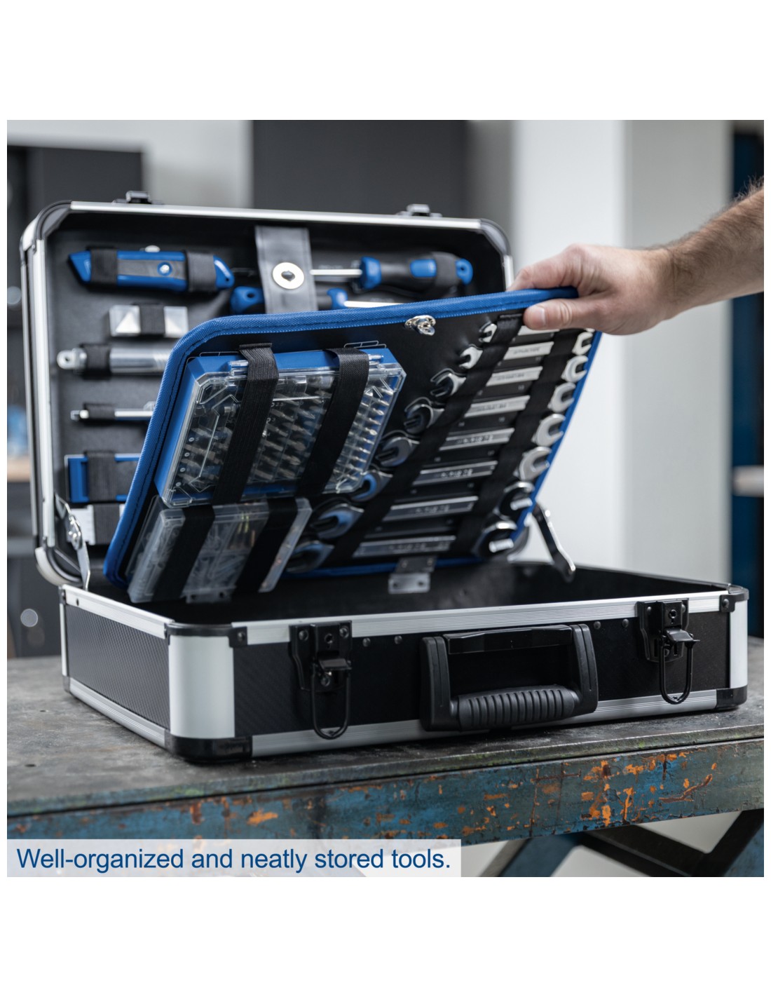 • Facile trasporto e comoda conservazione degli utensili in una robusta valigetta in alluminio con serratura e angoli rinforzati.