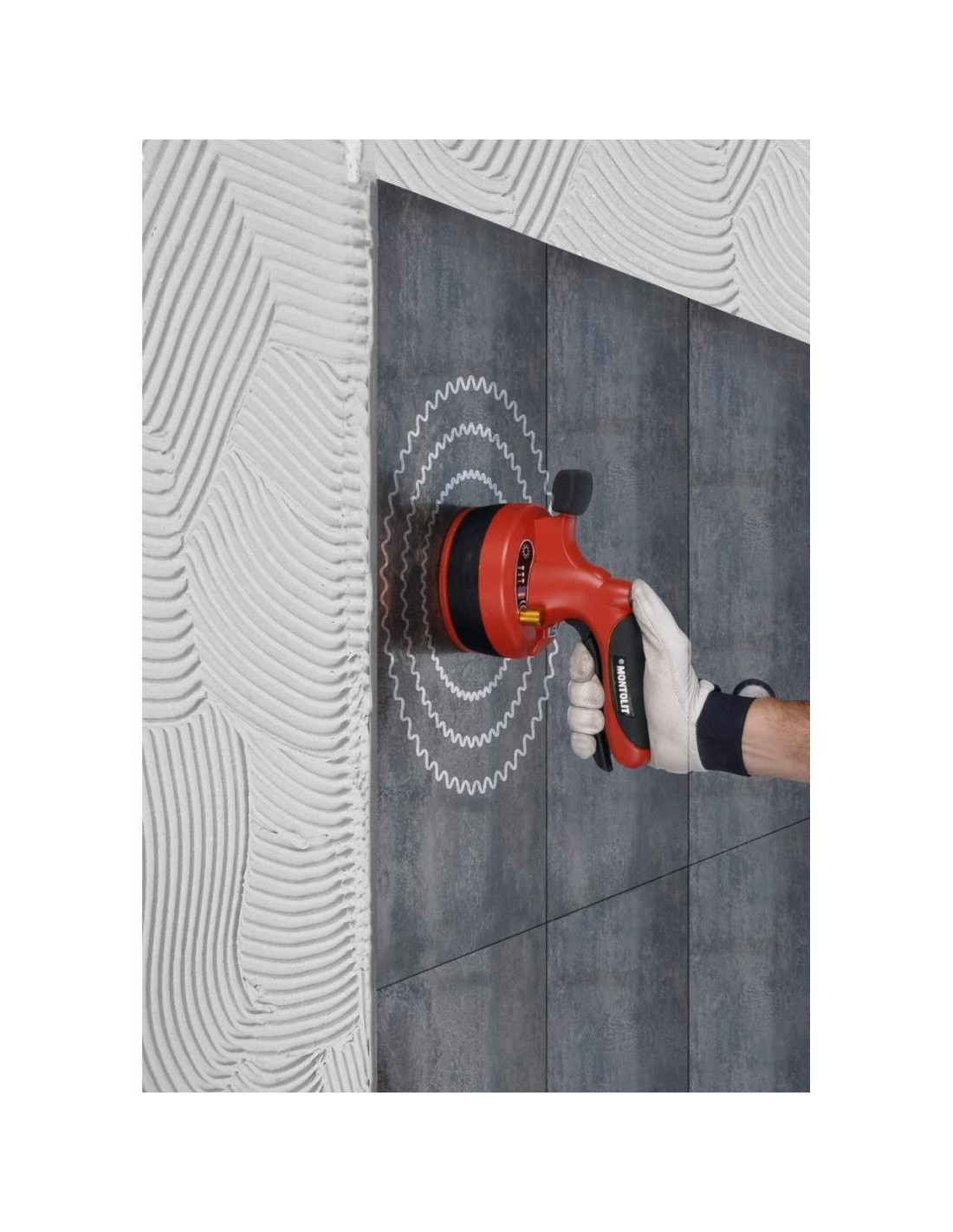 Questa ventosa funziona con delle micro vibrazioni regolabili che facilitano la distribuzione dell’adesivo sotto la superficie della piastrella, evitando bolle d’aria.