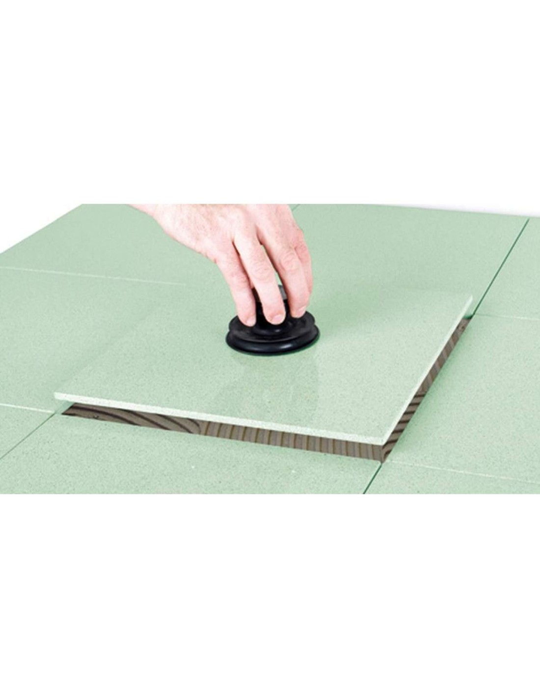 Ventosa per piastrellista con pomello ergonomico utile per movimentare piastrelle di differenti formati evitando di danneggiare la superficie della ceramica. Questa ventosa è realizzata al 100% in gomma per massimizzare l’aderenza alla piastrella e facilitare le fasi di movimentazione del materiale.