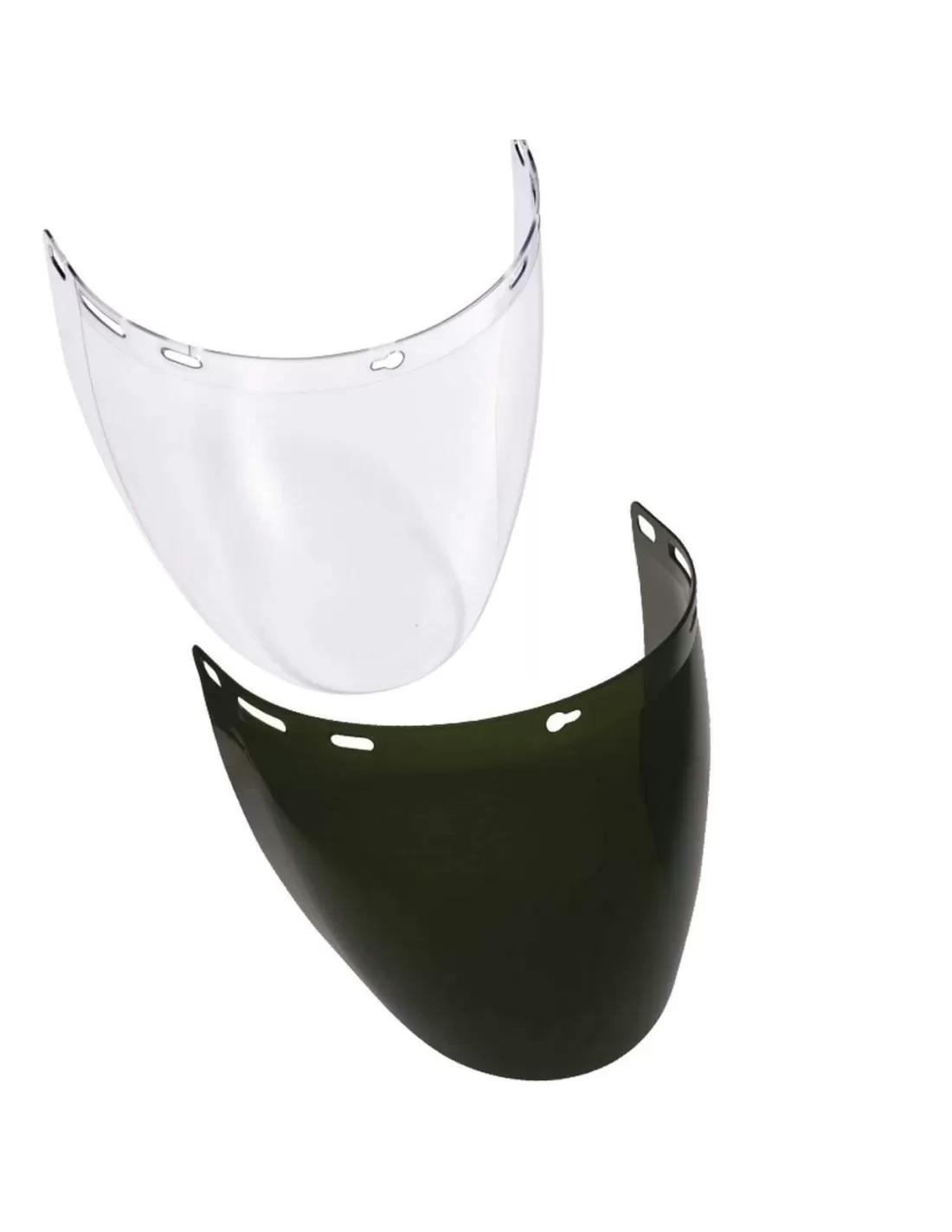 Visiera iniettata policarbonato incolore. Spessore 1,9/2,0 mm. Protezione dall’arco elettrico. Fissaggio universale.
